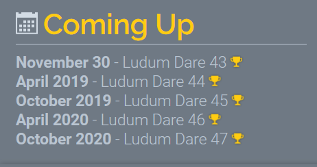Não se sabe o motivo, mas, no site oficial, estão marcadas apenas duas edições para 2019 e para 2020. Normalmente, as três edições da Ludum Dare eram realizadas em abril, agosto e dezembro, agora, deverão ocorrer somente nos meses de abril e outubro.